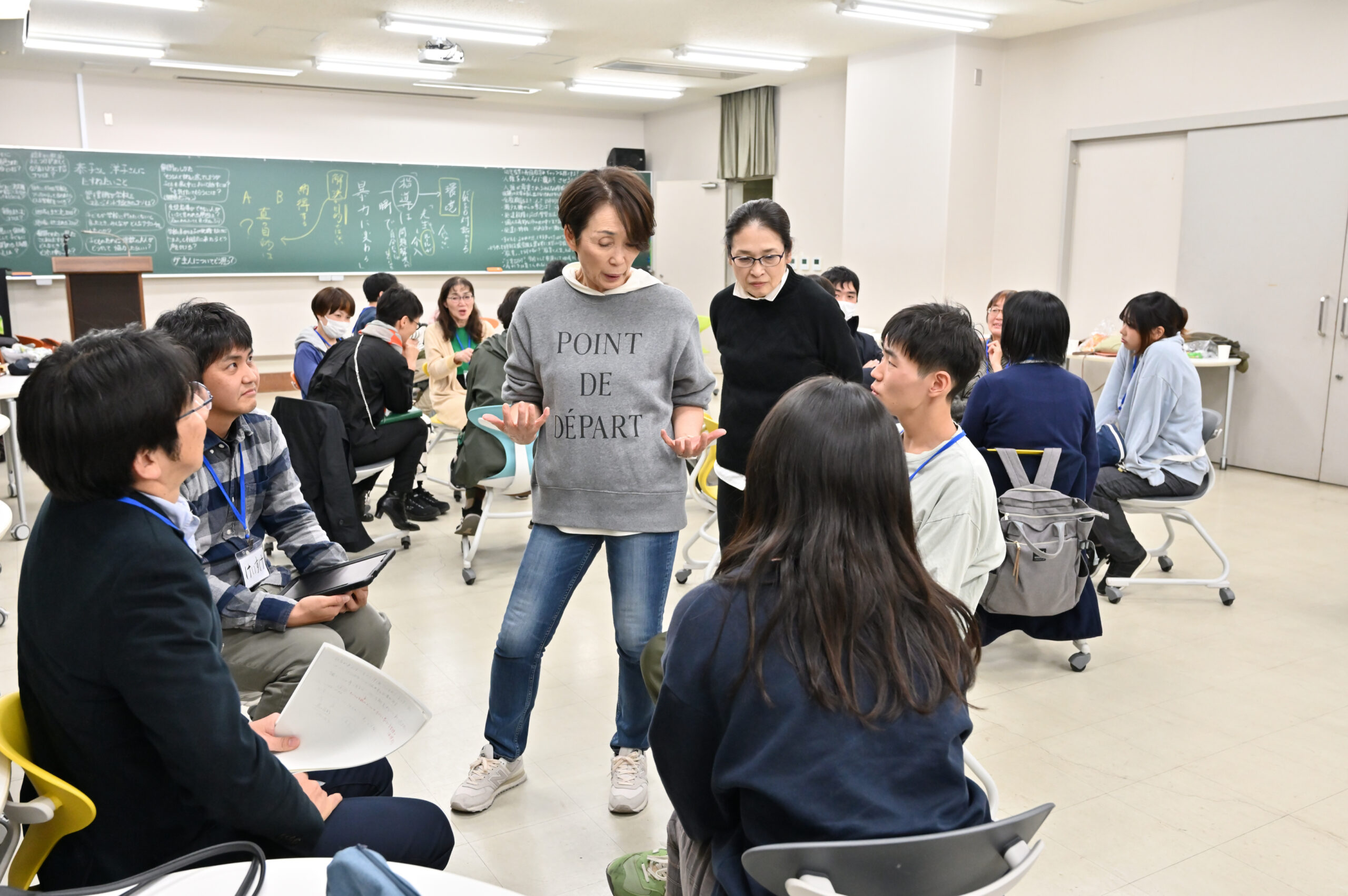 現在、インクルーシブな学びが可能な学校を創り上げていくことが、日本政府からも国連からも要請され、その実現が模索されています。このカフェは、学校教員やスクールソーシャルワーカーに関心のある学生が、学校教育現場に関わる人からワークショップを通して学んだり、読書会や講座などを開いて対話したりして、「インクルーシブな学びが可能な学校」について探究しています。今年度は大阪市立大空小学校初代校長 木村泰子氏と元教諭 塚根洋子氏をお招きし、学外の教育関係者と一緒にワークショップを実施しました。