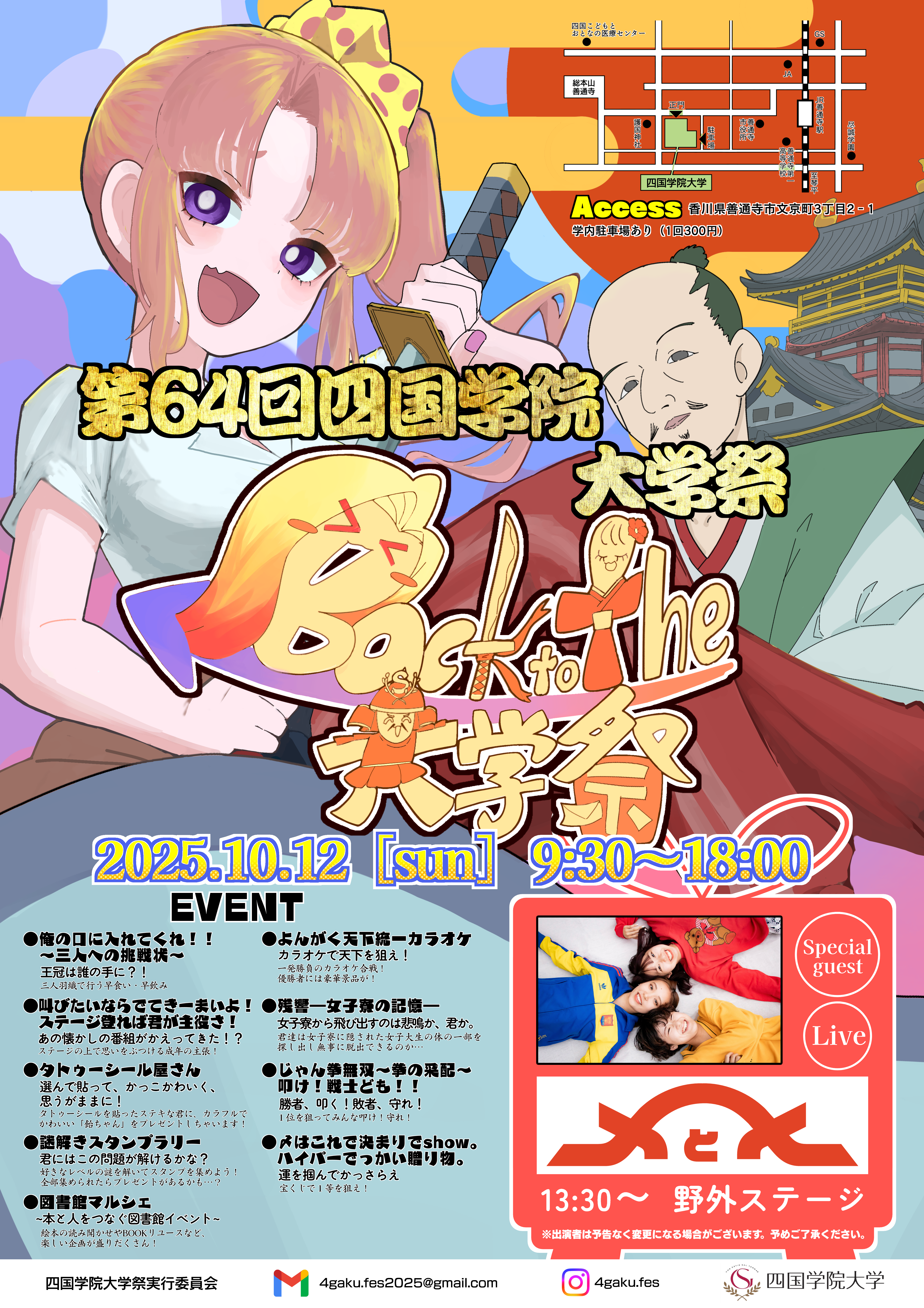 2025年10月12日(日)、第64回四国学院大学祭「Back to the 大学祭」を開催いたします。