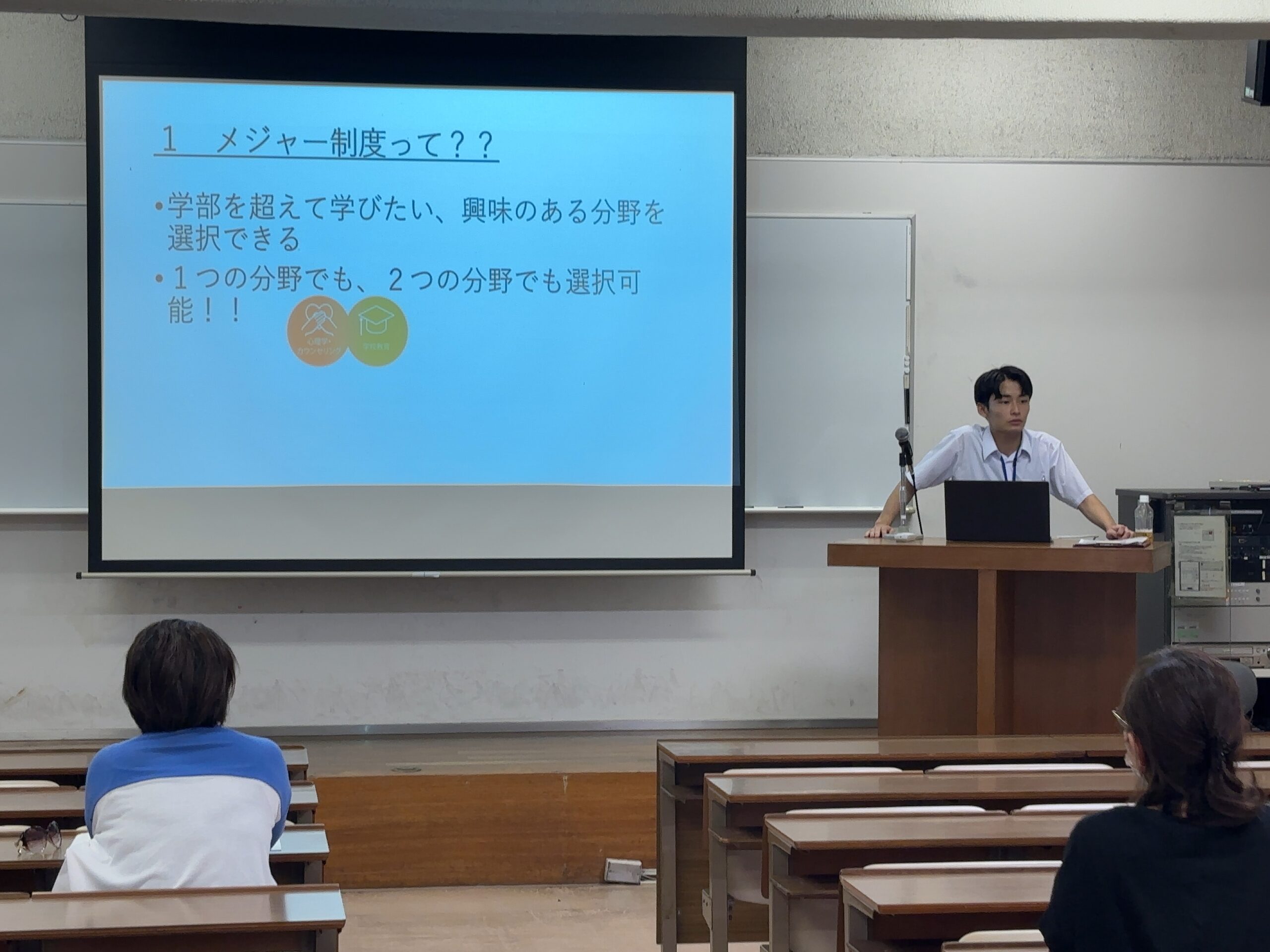 本学のメジャー制度の特色、奨学金、本学ならではのキャリア教育・支援などについて紹介しました。