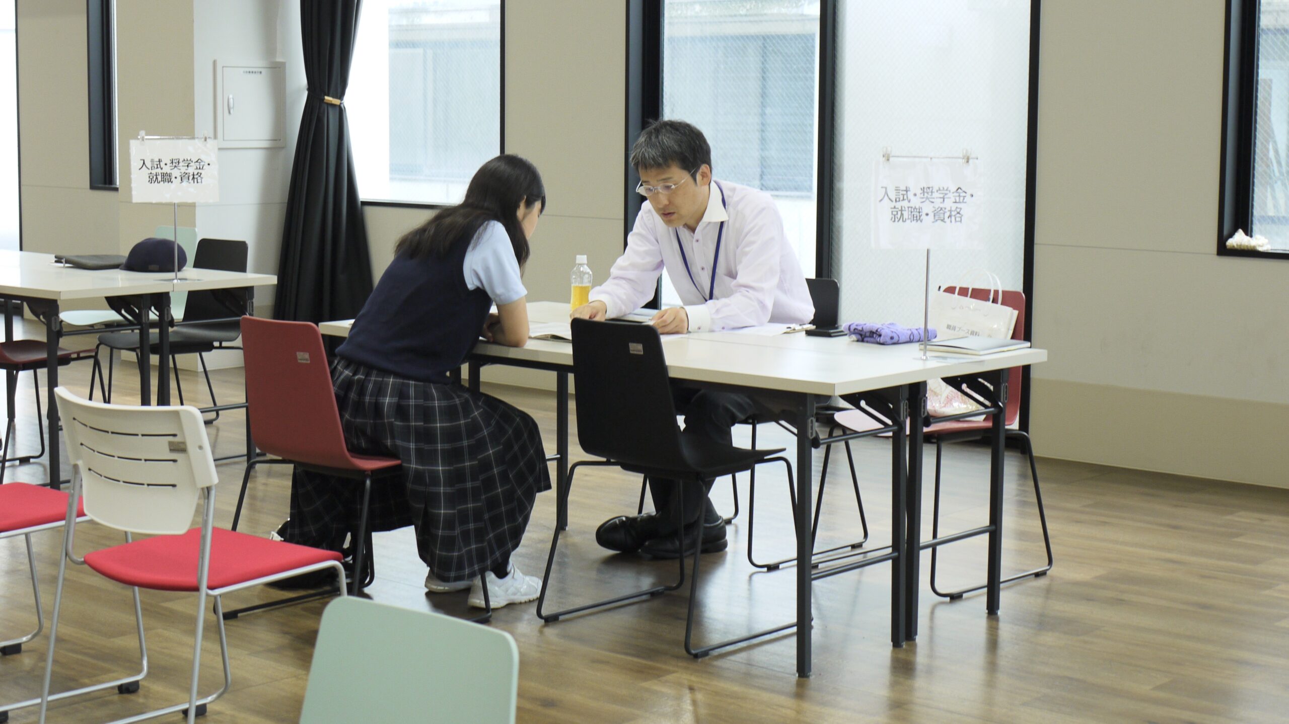 入試相談では、入試の種類や奨学金・資格取得などについて、学部別個別相談では、各学部の教員に学びについて相談することができました。