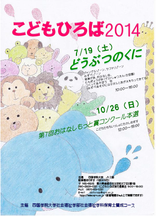 四国学院大学社会福祉学部社会福祉学科保育士養成コース主催で毎年、好評をいただいております「こどもひろば」を今年も引き続き開催いたします。