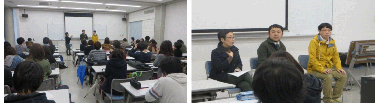 2014年12月11日(木)13:30~、826教室にて、レクチャーズ・オン・ヒューマンライツとして、映画「エソラ」を田中昭全監督とパートナーの川田有希さんを迎え、上映しました。講義を受講したのは38名で、映画から田中監督のメッセージを受け取りました。受講者からは映画の主人公たちの男同士の恋愛を「普通の恋愛」だと感じた声が多く出ました。また、田中監督と川田さんのアフタートークや質疑応答で、世界と日本との制度上の違いやどういった苦労があったか等、より身近に感じるきっかけを得ることのできる講義でした。