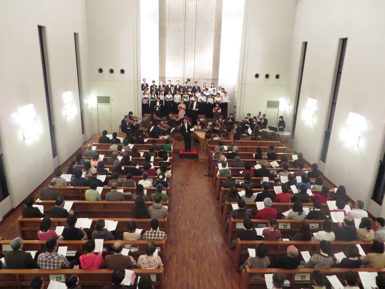 12月6日(土)清泉礼拝堂にて、第38回四国学院大学メサイア演奏会を開催しました。 17時30分に開演、途中2度の15分休憩を挟んでの3部構成で、最後は来場者と共に「きよしこの夜」を合唱しました。来場者数は約180人と大盛況のうちに終了しました。たくさんのご来場ありがとうございました。