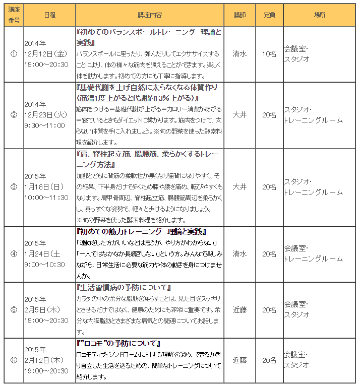 12/7(日)9:00~10:30 ※含バランスボールトレーニング紹介