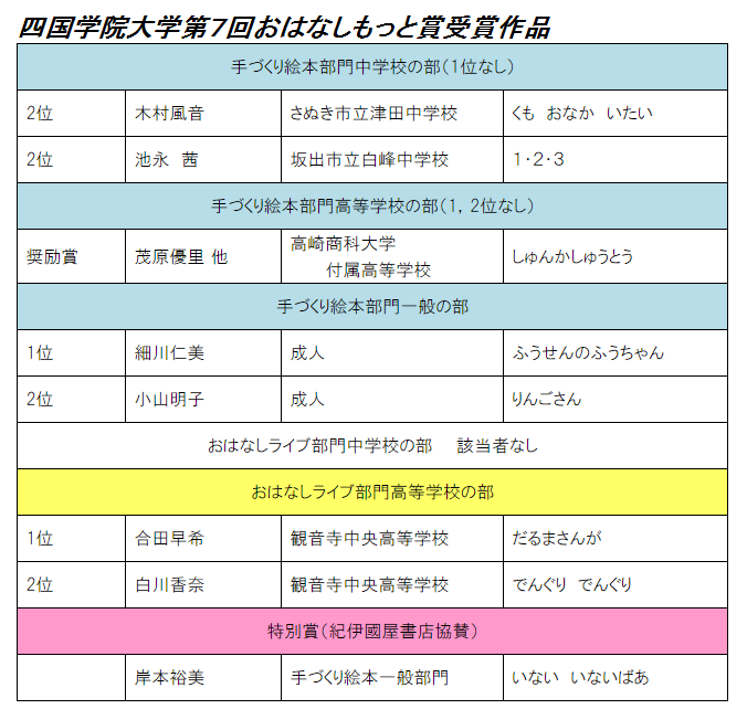 第7回おはなしもっと賞コンクール受賞者発表