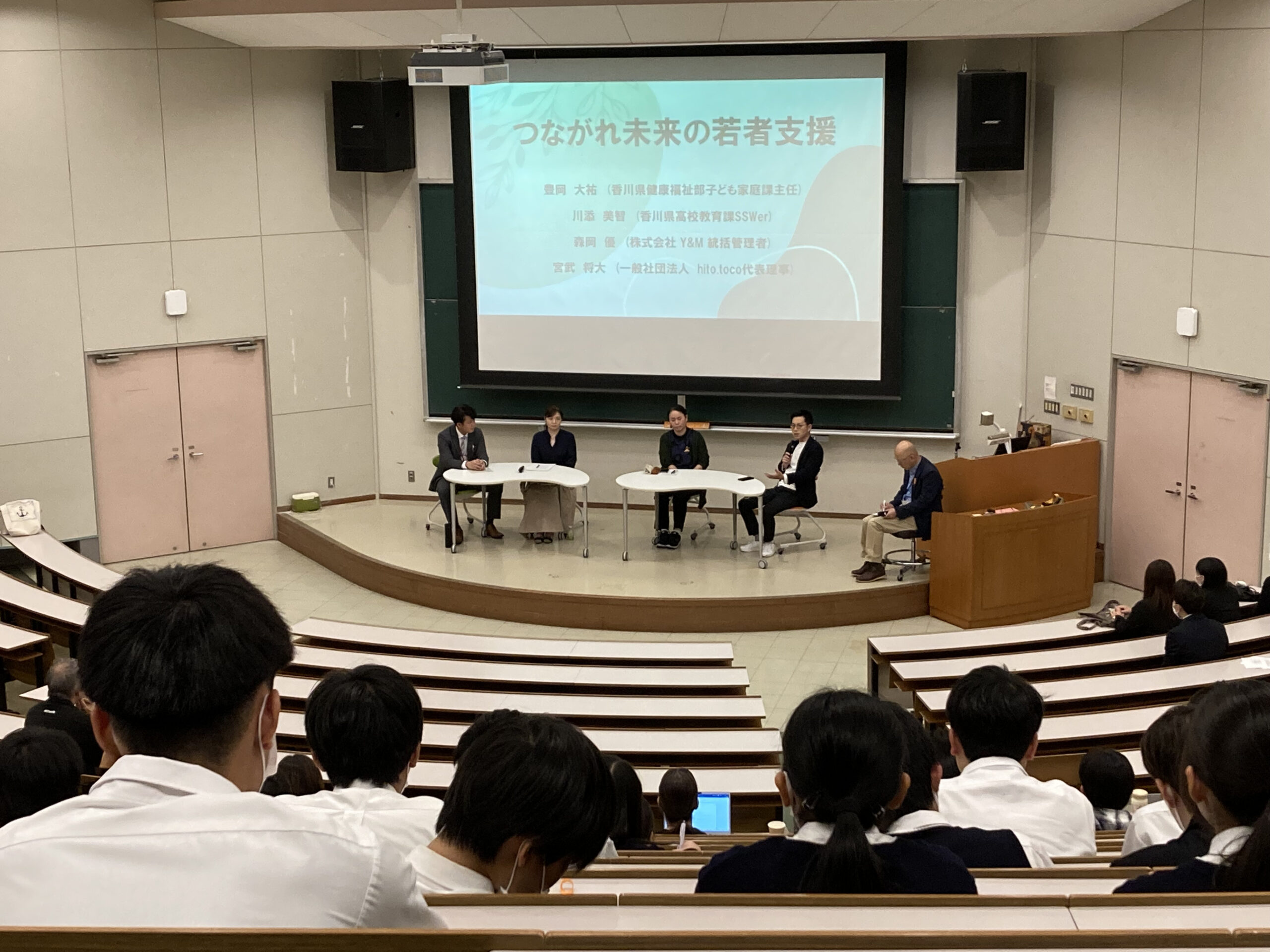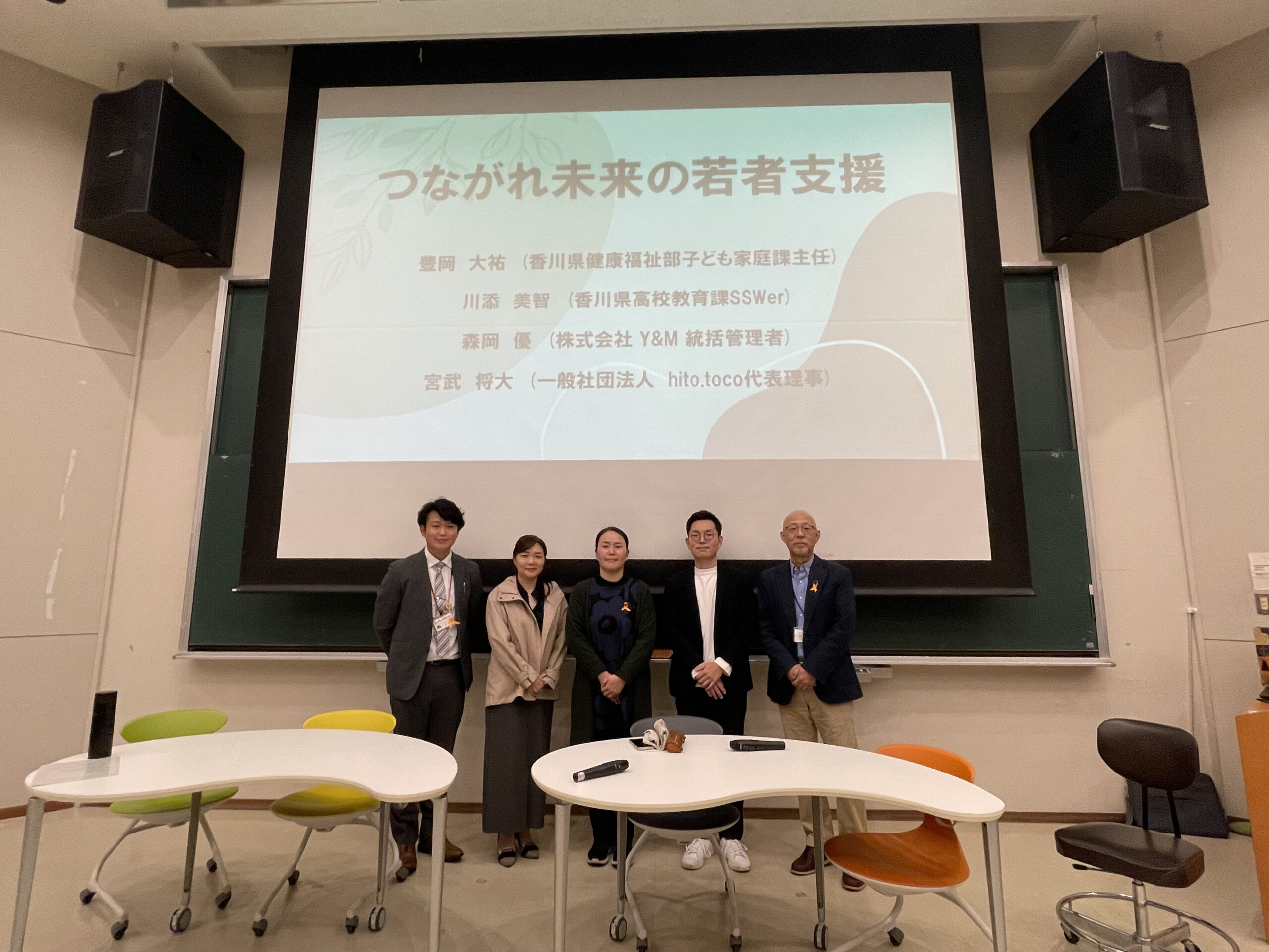 参加者は68名でした。4人の登壇者から、日々の具体的な実践内容とそこで支援者として大切にしている理念や視点、若者支援を進めるにあたって山積している課題等について発言していただきました。また、終盤では「つながる」というキーワードを用いて、将来領域や分野を越えて必要な支援が有機的に連携するための考え方や工夫について、それぞれ意見を述べていただきました。