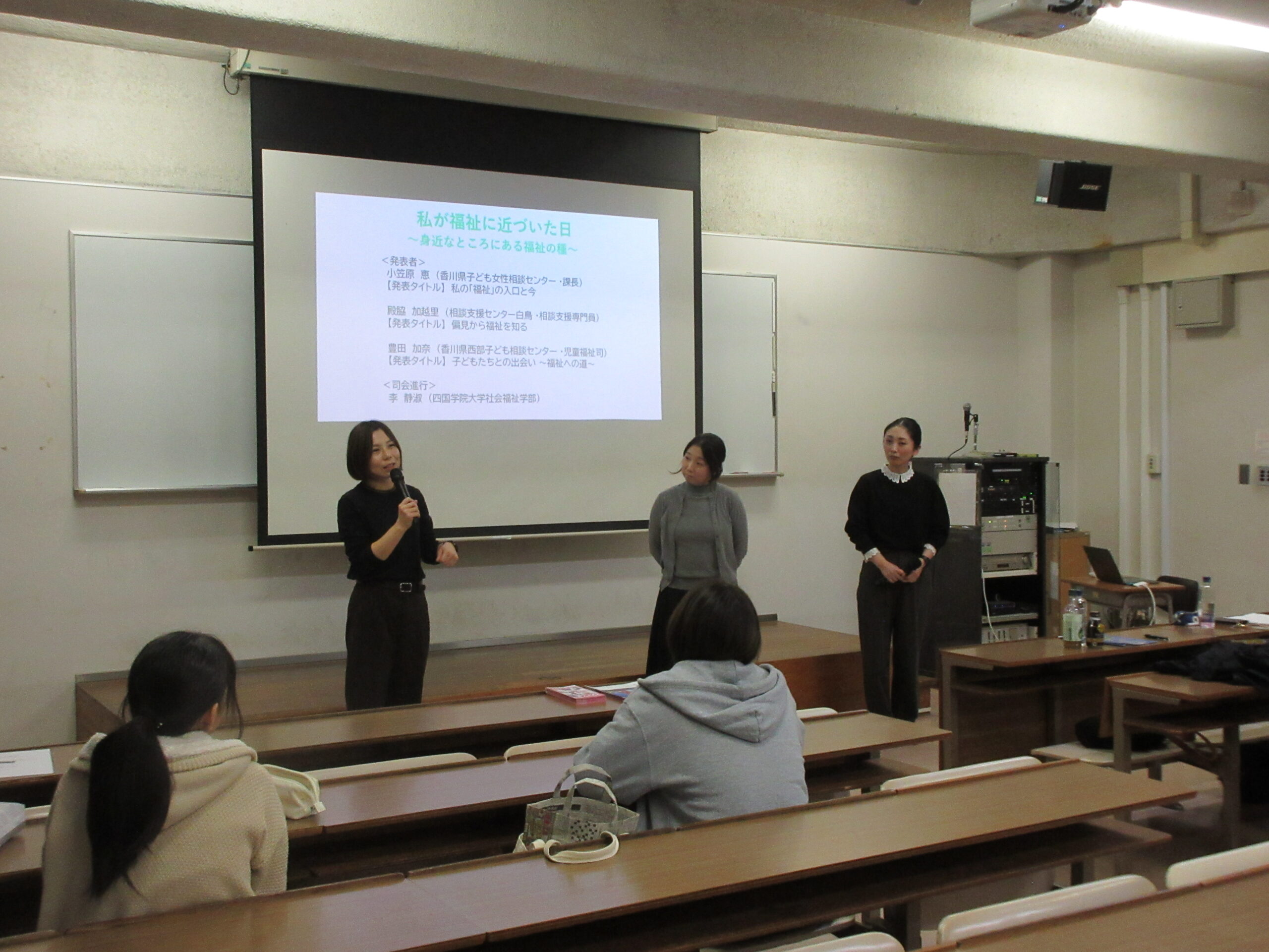 現在、福祉に携わっている登壇者3名の方に、これまでの人生を振り返ってもらい、福祉に繋がることになった体験や出来事を話してもらいました。また福祉に関わる仕事をすることの意味について、参加者と一緒に考えることができた有益な時間となりました。