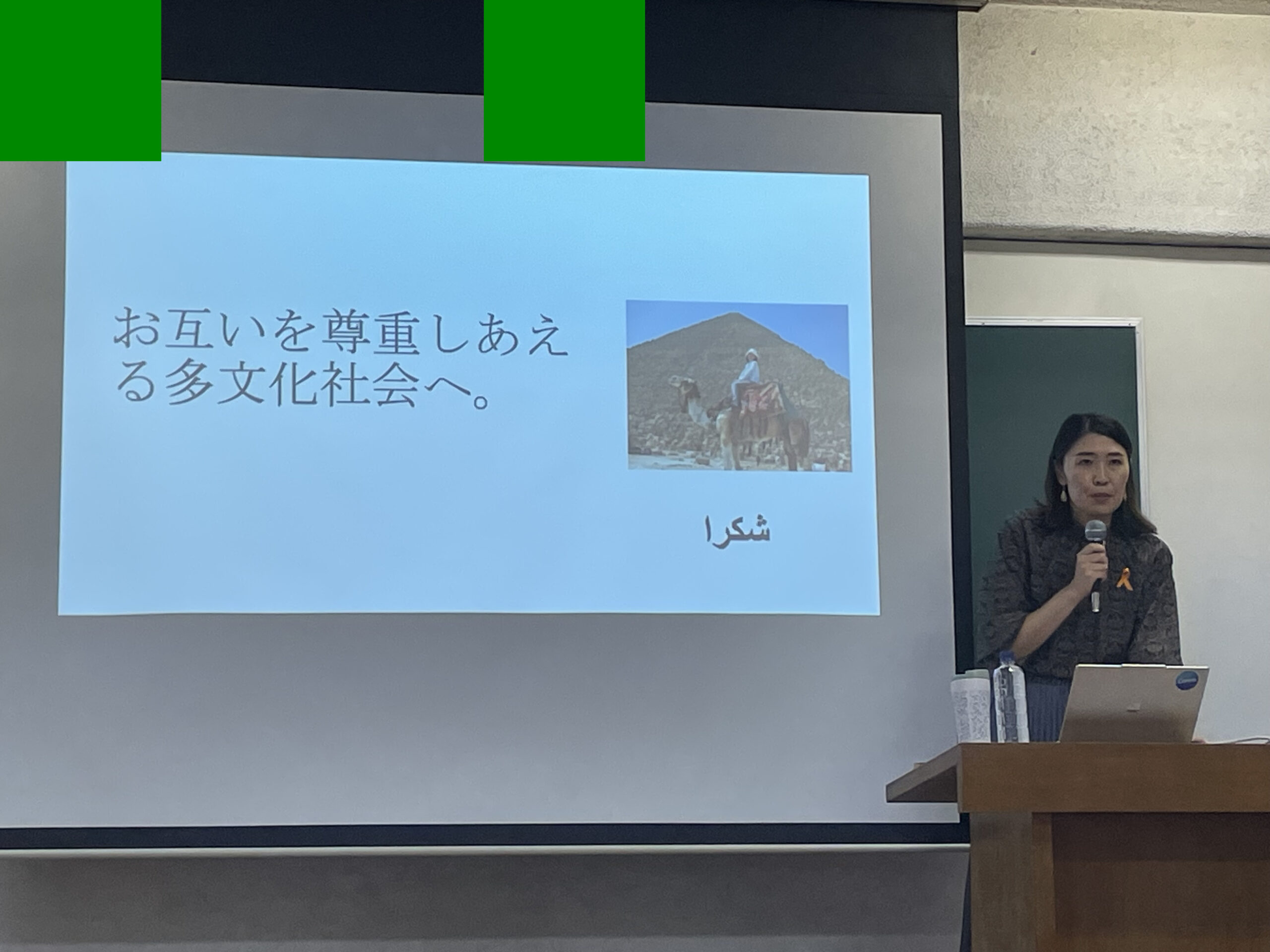 企画講演では、エジプトの子どもが、保育現場でどのような生活を送っているかを知ることを通じて、香川でも増えている外国籍の人々とともに、地域で生活していく上での課題を考える機会として企画されました。日本人からすると、特にイスラム教は、見聞きする機会が日常的にないこともあり、多様化する地域社会の中で、外国籍の方を含めた地域づくりのあり方を考える機会となりました。