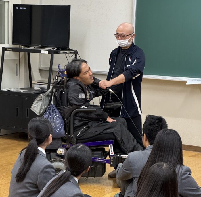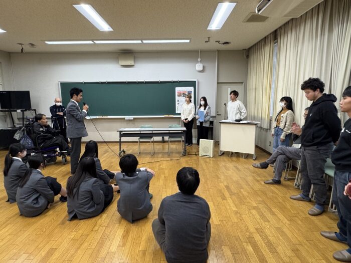 この訪問は、社会福祉学部・富島教授が企画する「障害者理解のための当事者・生徒・学生の交流会」の一環として実施されたもので、香川県藤井高等学校、高松南高等学校福祉科に続き3回目の開催となります。