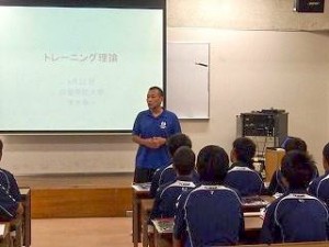 2015年8月11日(火)出雲西高校サッカー部の生徒さん25名が来学されました。午前中は大学概要の説明とトレーニング理論に関する講座を受講し、昼食後、本学の人工芝サッカー場にて、香川西高校と練習試合を行いました。
