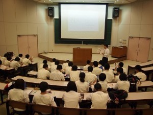 6月22日(月)津田高校から生徒・教員38名が大学見学に来られました。 大学の概要説明や先輩の話を聞いたり、施設見学、学食を体験して、高校とは違った大学の雰囲気をしっかりと感じられていました。