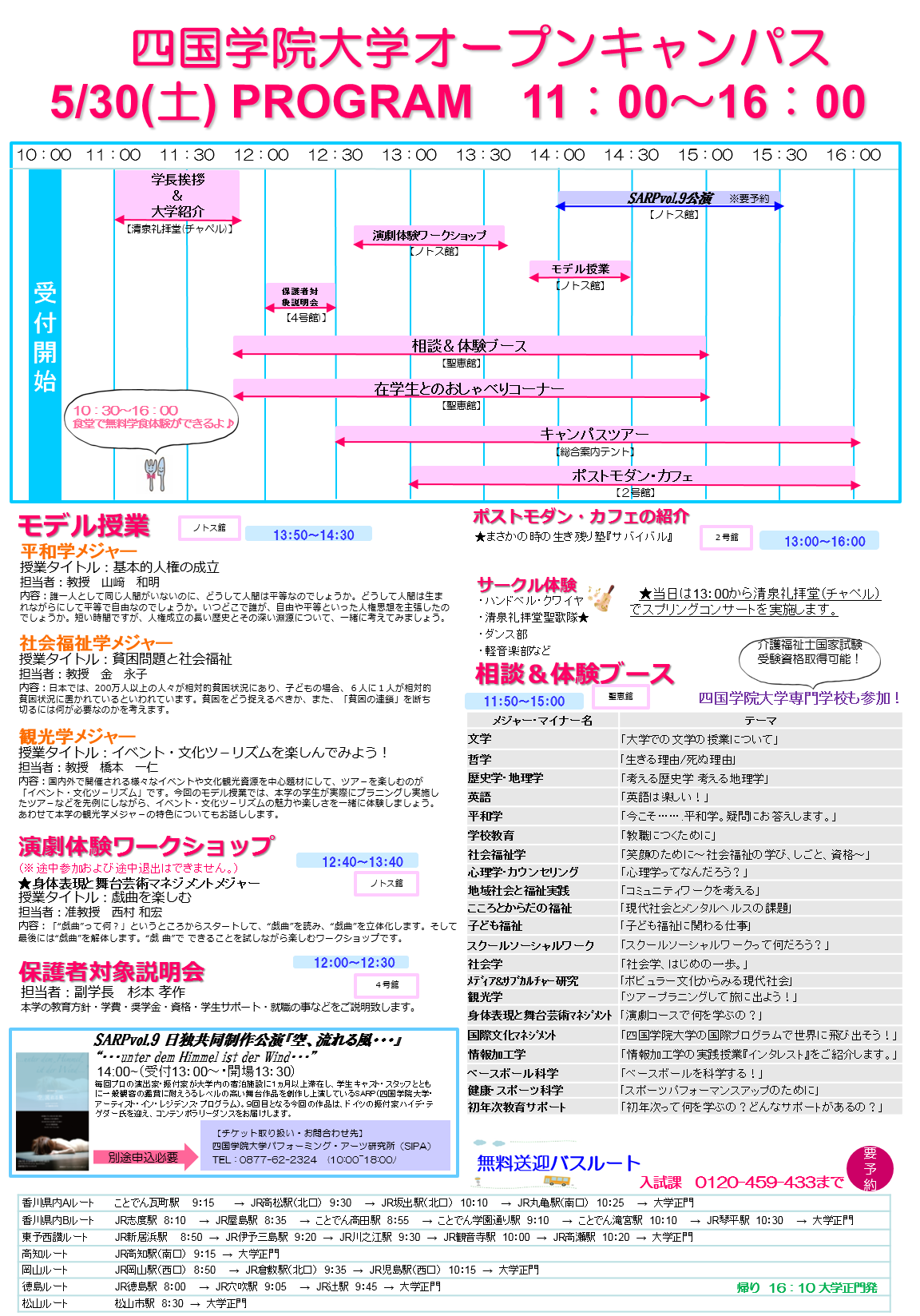 5月30日(土)オープンキャンパスプログラムが決まりました!