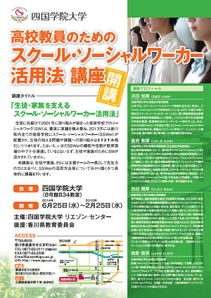 全国に先駆けて2001年に取り組みが始まった高等学校でのソーシャルワーク(SW)は、着実に実績を積み重ね、2013年には香川県内全ての高等学校にスクール・ソーシャルワーカー(SSWer)が配置され、生徒の抱える問題や課題への取り組みはますます本格化しつつあります。とはいえ、いまだSSWerの機能や役割が教育現場の中で十分浸透しているとはいえず、生徒や家族のためにSWが活かされていません。
