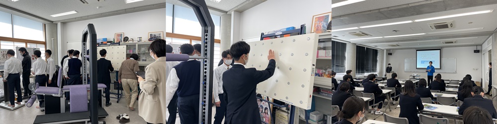 3月9日(木)と3月16日(木)に香川県立高瀬高校のスポーツコース1年生22名、2年生28名が校外研修として講義体験に来学しました。本学の測定研究室で体組成測定をした後、その測定結果に基づき、体脂肪などの話からスポーツと栄養についての講義「体組成とスポーツ栄養について」を受け、大学の講義を体験していただきました。